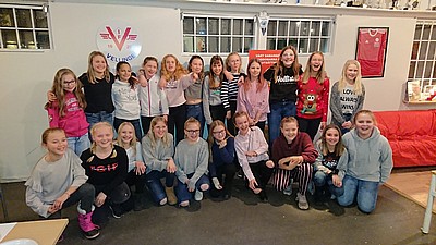 gäng glada tjejer inrusande och sprudlade med energi. Vi samlade dom och gick