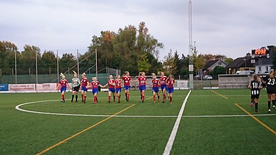 Sista halvlek blev 25min med vilt krigande och inte mycket till spel för vår del tyvärr. Vi visste att de skulle trycka upp ännu mer och vi hade snackat om att lyfta upp vårt spel då vi hamnade alldeles för lågt i uppspelsfas och även försvarsmässigt. Vi satt oss i knät hos Lily i försvar och när vi startade anfallen började vi ju nästan nere vi hörnflaggan. Köpingebro satte press på oss och vårt lag blev väldigt långt. Tror aldrig jag sett oss bli så långa innan faktiskt. Vi spelade också för brett med vår 3 backslinje så där blev ytor och en reducering kom redan i minut 55. Men bär spelet inte fungerade så visade tjejerna upp en härlig krigarmentalitet. Vi skulle bara vinna denna match det hade vi sagt innan. Det blev lite som innan att Köpingebro hade boll men kom inte till lägen vi stängde igen mitten och drog ner yttrarna något och mot slutet så tog vi över igen och kunde i sista sekunden trycka in 3–1 genom Rebecca (din lyckokaka stämde verkligen idag). Signalen gick och vi tog en 3–2 seger och jublet dånade över Östran. Vi blev så glada att i all hast glömde vi ju tacka vår härliga publik detta ber vi om ursäkt för och det ska inte hända igen 😊. Ja och vi hörde buropen 😊.