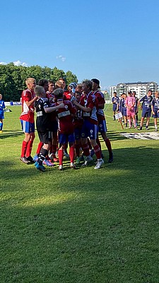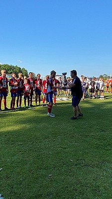 Vi är fast beslutna om att vinna matchen när vi går ut i andra halvlek och som vi gör det. precis i början av halvleken sätter vi upp ett fint anfall. Gustav startar anfallet spelar Ludde som driver upp bollen och spelar ut den till Viggo S, Viggo sätter ett riktigt ballonginlägg mot bortre delen av straffområdet där Danni möter med pannan och snyggt lobbnickar den över målvakten. 2-1 och vilt jubel... Efter detta är det inget snack. Vi pressar FcT och med ca 10 minuter kvar bryter Kasper bollen mitt på FcTs planhalva, avancerar och sätter spiken 3-1. Ännu större jubel ute vid ena hörnflaggan där det firas med spelare från klubbens p09 och p10 lag som också varit i Bromölla. Vi är dock inte färdiga här, utan vi bjuds på en riktig delikates när Noel sätter 4-1 med en härlig brassespark och sedan på fin framspelning av Viggo M rullar in sitt för tredje mål och spikar resulatet till 5-1. Vi är otroligt värda vinnare av turneringen och vi kan glada och stolta ta semster och ta sikte på hösten