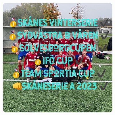Det roligaste är dock att vi i höstens Skåneserie B klarar av att leverera hela vägen. Visst landar vi tvåa efter Skanör på en målskillnadsaffär men då både ettan och tvåan tar klivet upp lämnar vi lag som Landskrona (årets DM vinnare) Helsingborgs IF och Malmö FF bakom oss och spelar under våren 2023 Skåneserie A för 15åringar, en serie med 10 av Skånes 12 bästa 08lag, de två som saknas spelar 07:serie